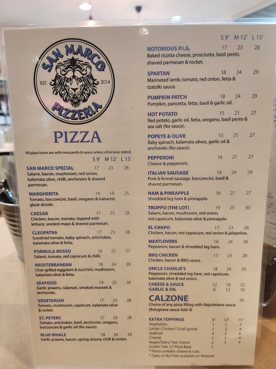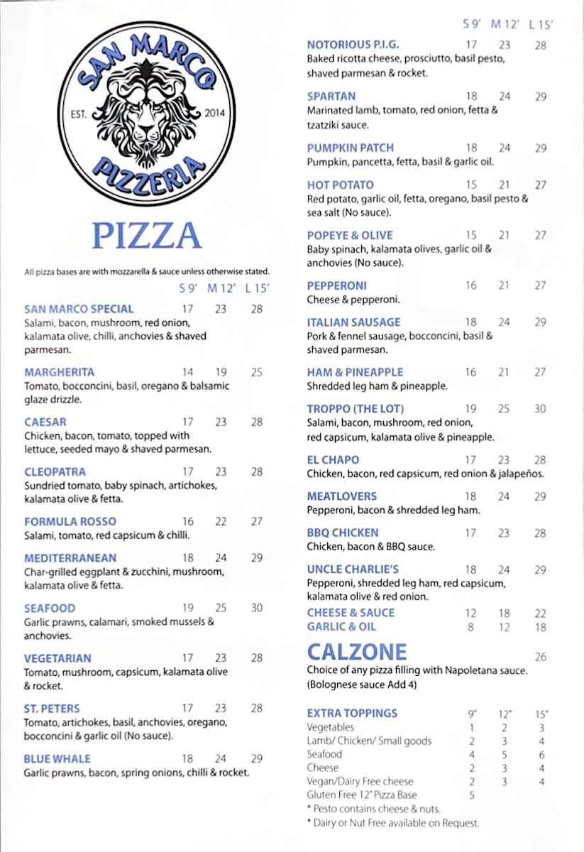 Welcome to San Marco Pizzeria, a hidden gem nestled at 193 Payneham Rd, St Peters. This family-run eatery captures the heart of authentic Italian cuisine, specializing in freshly baked pizzas and pasta dishes that resonate with flavor and quality. Customers rave about their signature creations like the Blue Whale and Pumpkin Patch pizzas, each featuring a perfectly crispy crust and generous, vibrant toppings.